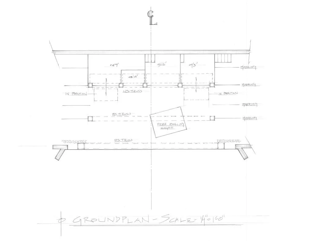 ALMANAC DIRECTED BY MAURICE PARENTSCENIC DESIGN BY THEODORE SIMPSON SAMPLE STRIKE PLANAND DESIGNER GROUND PLAN